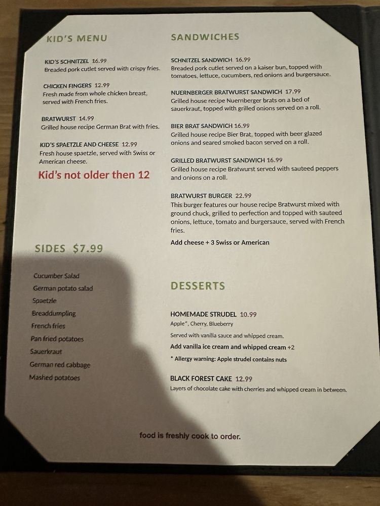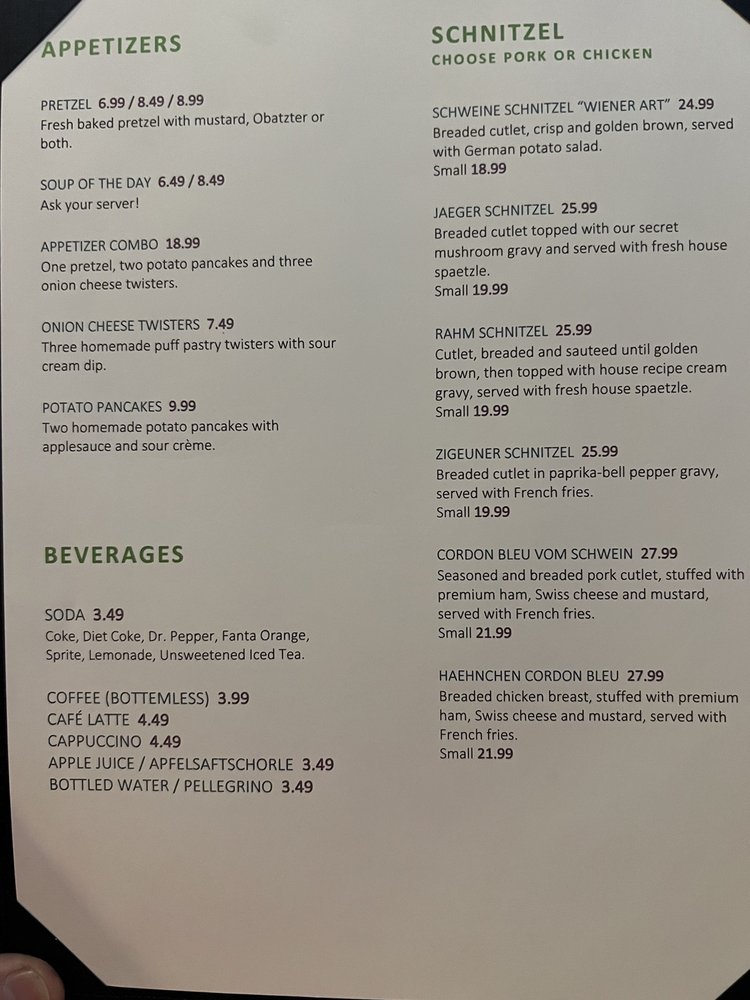 The menu boasts delectable items such as their famous Beef Rouladen, flavorful bier brat sandwiches, and mouthwatering apple strudel. Guests rave about the rich flavors and authenticity, especially during special occasions like Oktoberfest. Don't miss the daily specials, often highlighted at the entrance!